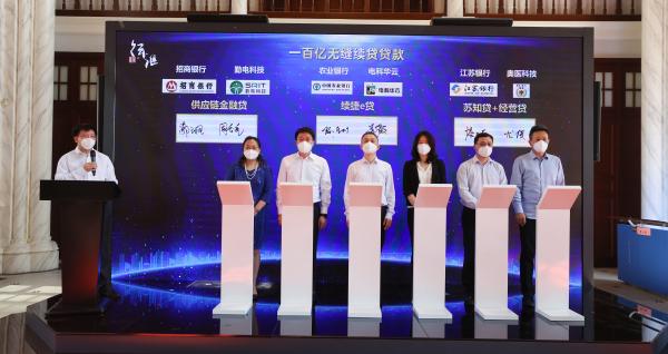 签约仪式上,工商银行与捷诺生物、中信银行与国资经营公司、兴业银行与泰坦科技、浦发银行与安几科技分别就疫后重振增量降率贷款达成合作;农业银行与电科华云、招商银行与勤电科技、江苏银行与奥医科技分别就疫后重振无缝续贷进行签约。